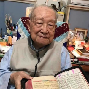 75 tahun beliau ikut Tuhan Yesus dan sudah membaca alkitab 95 kali 2 Tim 4:7 – Aku telah mengakhiri pertandingan yang baik, aku telah mencapai garis akhir dan aku telah memelihara iman.